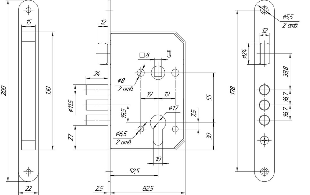 Замок врезной цилиндровый с защелкой, без механизма секрета. Предназначен для установки в деревянные и металлические двери.