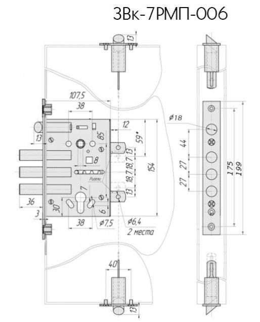 - Имеет защелку и засов,а также 2 торцевые защелки, засов состоит из трёх штырей;