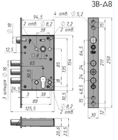 Цилиндровый замок с функцией "Закрывание" замка поднятием ручки. Замки серии "АССИСТЕНТ" предназначены для установки на металлические и противопожарные двери. Бэксет равен 65 мм (расстояние от наружной планки до центра отверстия под цилиндровый механизм замка или до центра оси ручек). Все замки снабжены засовом состоящим из 3-х штырей 15,8мм. Вылет засова составляет 26мм. Угол поворота ручки привода защелок через шток квадратного сечения 8х8 мм составляет 32град.