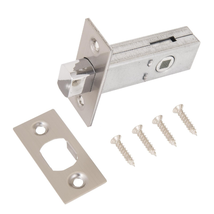 Универсальная задвижка врезная для установки на деревянные межкомнатные двери. Материал - сталь оцинкованная штампованная, гальваническое покрытие. Под завертку с квадратом 6 мм. Удаление ключевого отверстия - 45 мм. Торцевая планка с защитной пленкой для сохранения покрытия. Ширина планки - 25мм. Габариты корпуса - 68х21,5х15 мм. В комплекте - задвижка, саморезы, ответная планка и белый пластиковый вкладыш к ней.