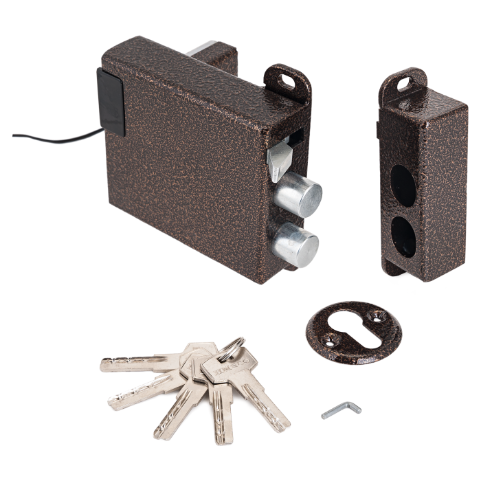 Замок накладной электромеханический Полис-11М-01 с ц/м 3 кл, кнопка открывания, без блока питания
