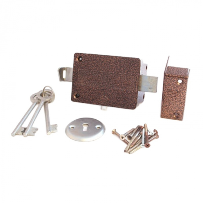 Замок накладной сувальдный с задвижкой. Предназначен для установки на деревянные двери. Засов прямоугольного сечения размерами 10х20 мм, с максимальным вылетом 26 мм. Удаление ключевого отверстия - 62 мм. Габариты замка - 100х72х24 мм. Комплектация - 3 ключа, запорная планка, накладка. Замок односторонний - изнутри ригель перемещается задвижкой с фиксатором.