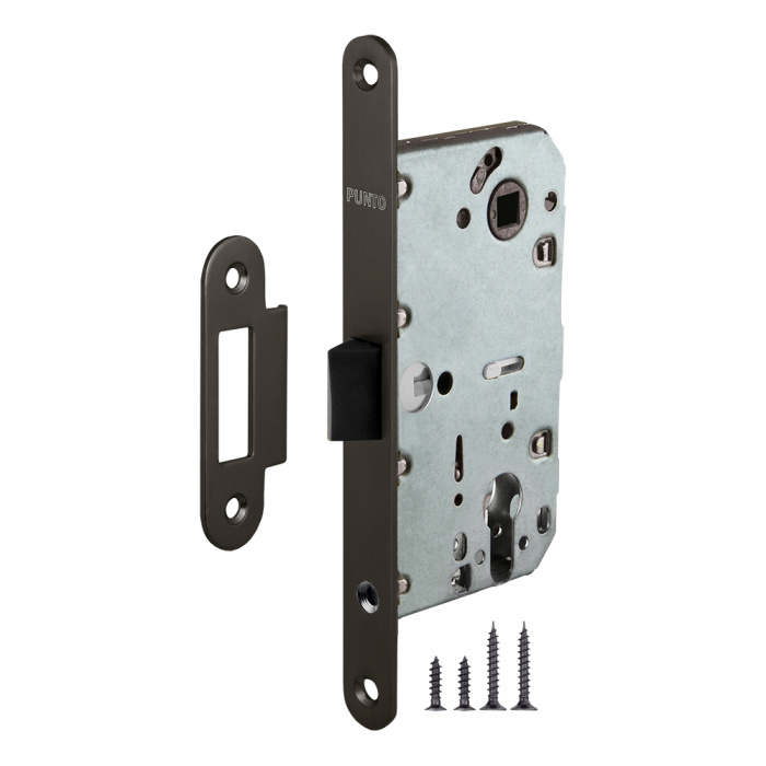 Корпуса замков Punto c пластиковым механизмом предназначены для установки в деревянные межкомнатные двери, подходят для дверей левого и правого открывания. Корпуса замков прошли испытания и имеют высший 4 класс надежности (250 000 циклов открывания/закрывания), что позволяет рекомендовать их для установки на двери помещений с большой проходимостью. Упаковка : блистер.