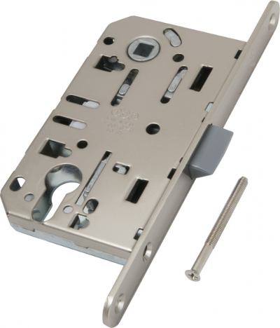 B01103.50.34 Замок межкомнатный под цилиндр в цвете матовый хром с пластиковым язычком серии MEDIANA EVOLUTION отличается бесшумностью при закрывании. Защелка разработанна инженерами компании AGB и объединяет в себе надежность, качество используемых материалов, точность механических соединений и инновации. Все замки серии Evolution имеют один размер и взаимозаменяемы между собой.