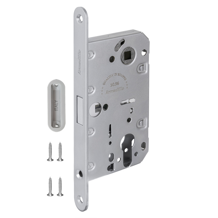 Магнитные межкомнатные замки Armadillo GRAVITY - симбиоз итальянского дизайна и современных технологий. Абсолютная бесшумность работы достигается за счет магнитного механизма, срабатывающего только при закрывании. В остальное время защелка утоплена в полотно. Такая конструкция делает торец более эстетичным и продлевает срок службы самого изделия.