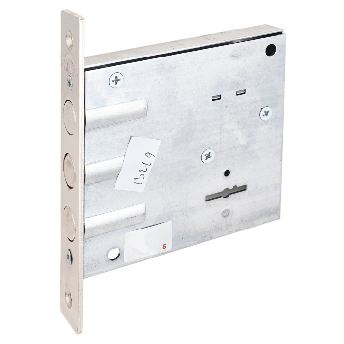 Врезной легкий замок с шести сувальдным механизмом повышенной секретности. Усовершенствованная конструкция сувальдного механизма замка обеспечивает долговечность и безотказность в использовании, мягкость хода и надежность благодаря, тому, что в ней используются серийно изготовленные спиральные пружины. Спиральные пружины обеспечивают строго вертикальное движение сувальд. Наличие витков на пружинах полностью исключает возможность их слома. Устанавливается во внутренние и межкомнатные двери. Двух ходовой засов замка (вылет 21,5 мм) выполнен в виде трех стальных цилиндрических стержней диаметром 16 мм. Удаление ключевого отверстия 78,5мм. Ширина торцевой планки 25мм.