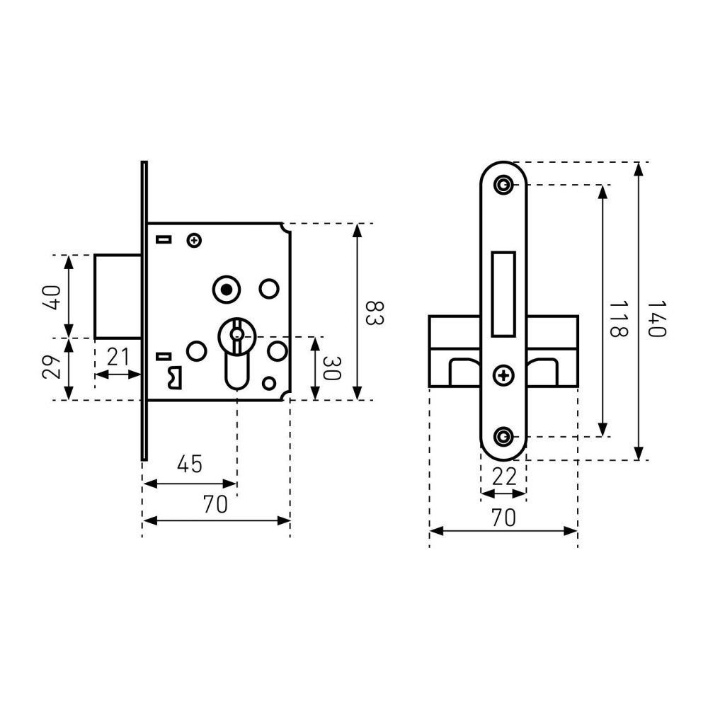 Комплектуется цилиндровым механизмом 70мм с 4 ключами, запорной планкой, комплектом накладок и комплектом для крепежа.