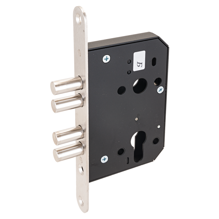 Замок имеет одно направление запирания — четырьмя стальными ригелями диаметром 12 мм, которые выдвигаются из корпуса замка на 24 мм. Запирание происходит на два оборота. Замок не имеет защёлки, поэтому рекомендуется к применению в качестве второго запирающего устройства. Может быть установлен в двери различного назначения — как металлические, так и деревянные.
