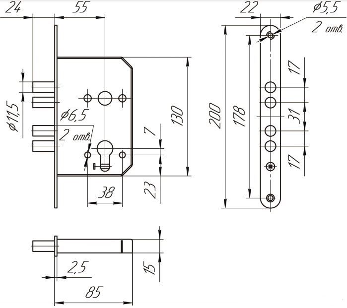 Замок врезной цилиндровый (корпус), сертифицирован на соответствие 2 классу ГОСТ. Дверные замки типа ЗВ1 102.0.0 подходят для установки во входные двери.