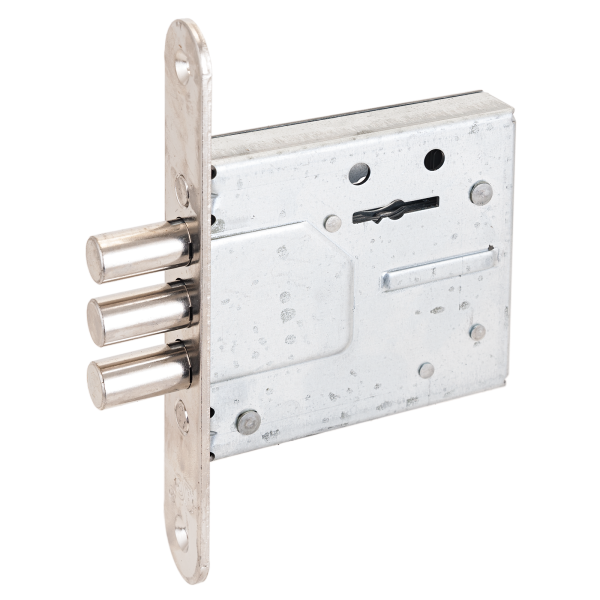 Три цилиндрических ригеля диаметром 11мм, вылет 21мм. Удаление ключевого отверстия 51мм. Стальной оцинкованный корпус. Ширина торцевой планки 22мм. Заявленная секретность 250 000 кодовых комбинаций. Замок имеет защиту от высверливания. Изготовлен из высокопрочных материалов.