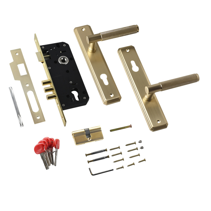 Замок врезной с комплектом ручек на планке. Предназначен для установки в деревянные двери толщиной 30 - 38 мм, правого и левого открывания. Материал ручки - прочный стальной пруток с продолжительным сроком службы. Удобная, безопасная форма с рифленой поверхностью. Материал планки - сталь. Покрытие комплекта ручек: гальваническое, многослойное. Стальной корпус. Покрыт полимерной краской. Межосевое расстояние - 70 мм, бэксет - 45 мм. Комплектация: латунный цилиндровый механизм 62 мм, секретность - 15000 комбинаций, 5 перфоключей, ответная планка, квадрат 8х8 мм, винтовые стяжки, саморезы. Класс замка по ГОСТ - 2. Гарантийный срок - 5 лет.