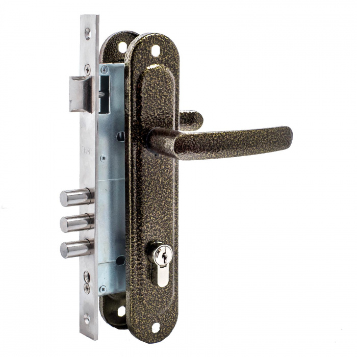 Замок врезной с/руч. Д-град Зенит ЗВ4-85.3-02, бронза, на 3 ригеля, м/о 85 мм.