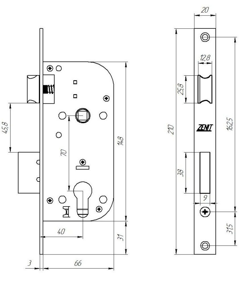 Замок врезной с/руч Д-град Зенит ЗВ7-70.4-02 хром