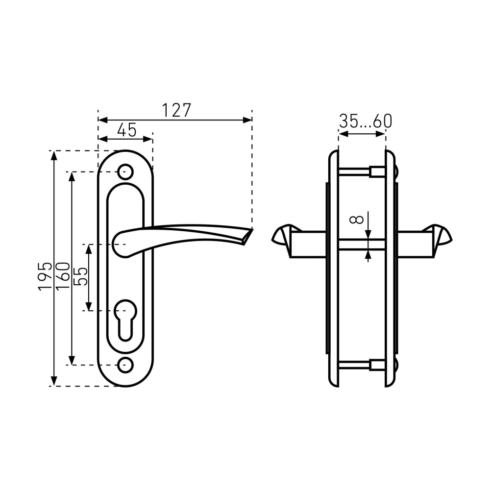 Предназначен для установки в деревянные двери толщиной 40-50мм, правого и левого открывания.