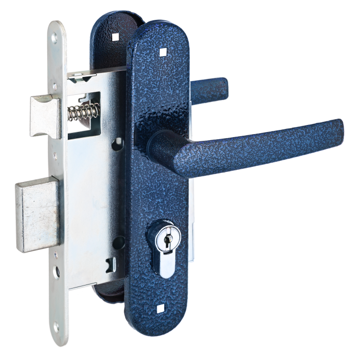 Замок врезной с/руч. Птимаш ЗВ4-3.08 синий муар СТЯЖКИ м/о 55