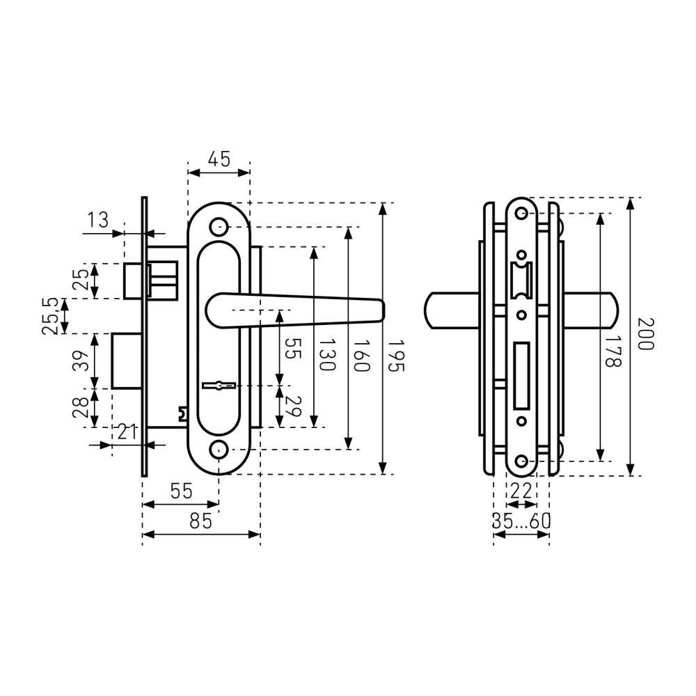 Предназначен для установки в деревянные двери толщиной до 65 мм, правого и левого открывания.