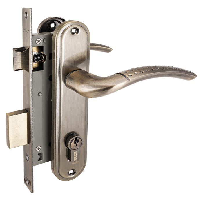 Замок врезной с ручкой АЛЛЮР 132/1 AB, старая бронза, 4 ключа