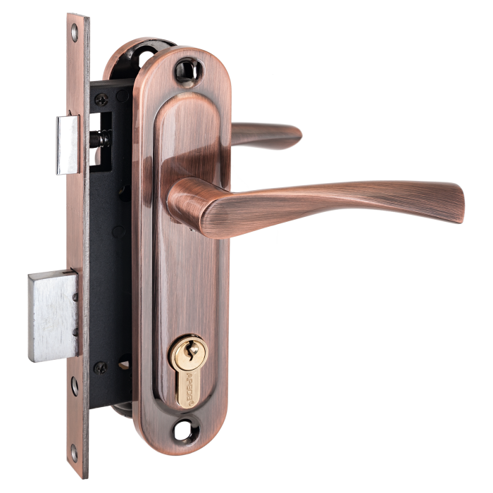 Замок врезной с ручкой Апекс 1223/60-AС, медь, м/о 70