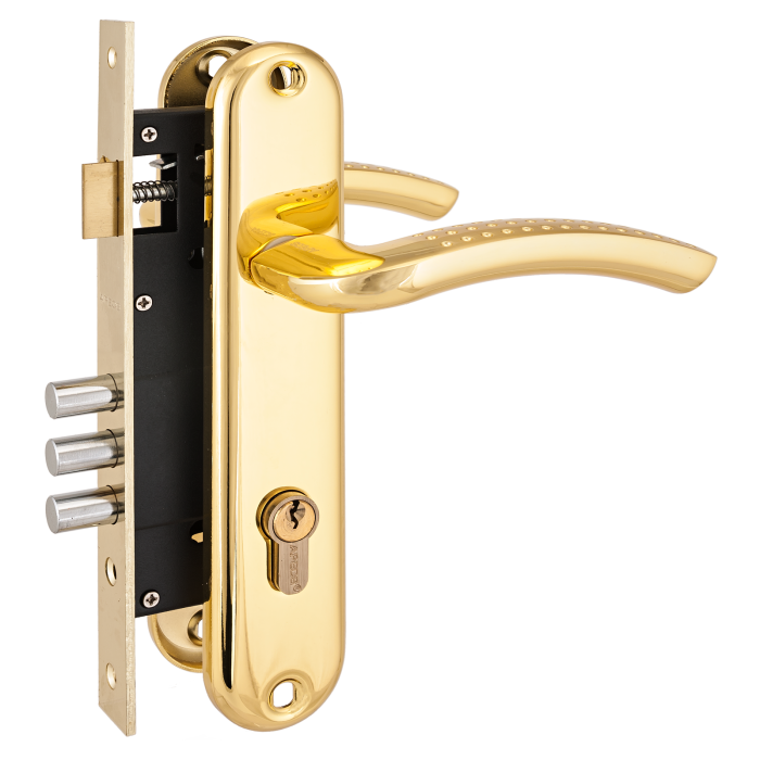 Замок врезной с ручкой Апекс 2227/60-G/GM золото/мат.золото м/о 85