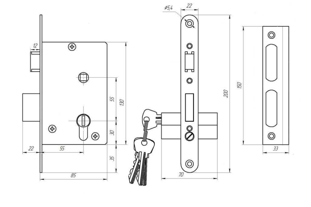 Комплектуется цилиндровым механизмом 70мм с 4 ключами, ответной планкой и стяжками.