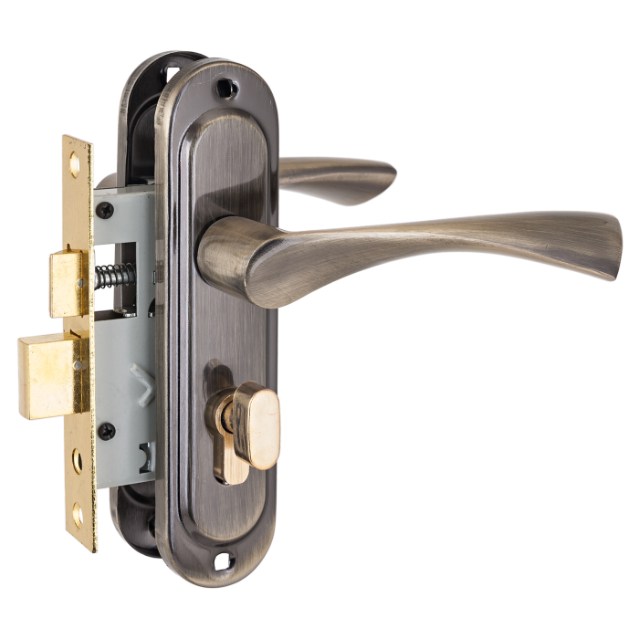 Замок врезной с ручкой Стандарт 103/50B вертушка AB старая бронза