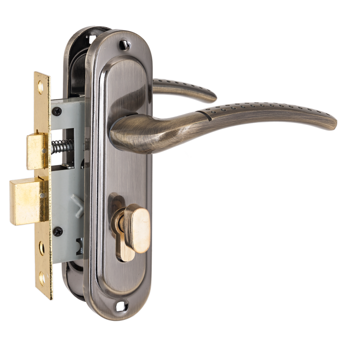 Замок врезной с ручкой Стандарт 132/50B вертушка AB старая бронза