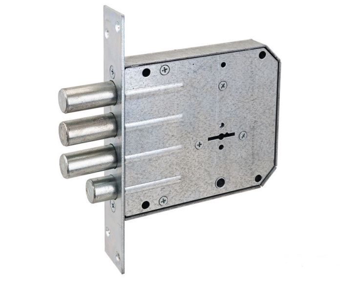 Замок универсальный. Замок имеет три стальных ригеля толщиной 18 мм. Максимальный вылет ригелей 40 мм.