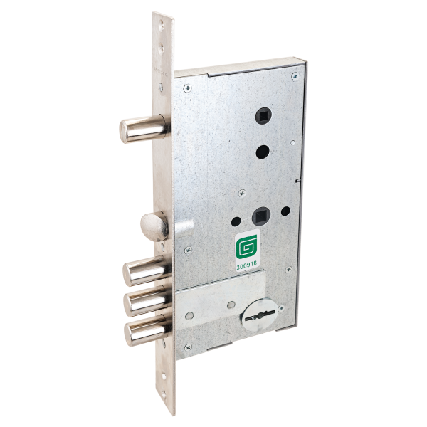 Замок врезной сувальдный с защелкой и задвижкой для металлических дверей. Замок имеет засов из трех цилиндрических ригелей из стали диаметром 15,8мм, с максимальным вылетом 26мм, задвижку диаметром 15,8мм и защелку диаметром 20мм. Удаление ключевого отверстия 65мм. Межосевое расстояние 77мм. Толщина полотна двери: 40-75 мм. Количество оборотов ключа – 2. Габариты замка - 205х97,5х26 мм. Комплектация - 4 ключа. Переворот защелки выполняется без разбора замка. Бронепластина надежно защищает от высверливания. Дополнительно защищен от самоимпрессии и декодирования.