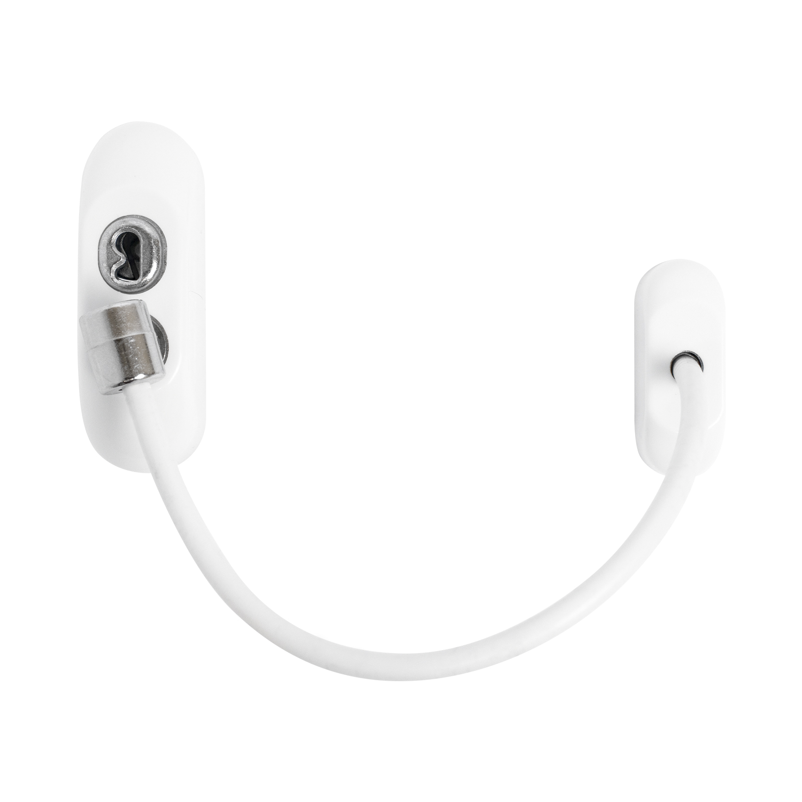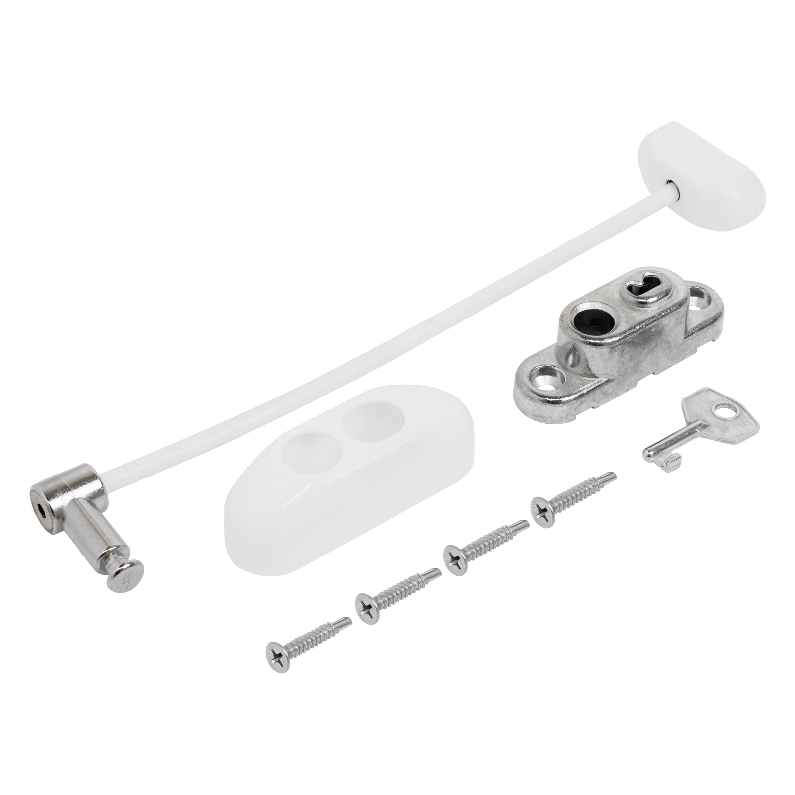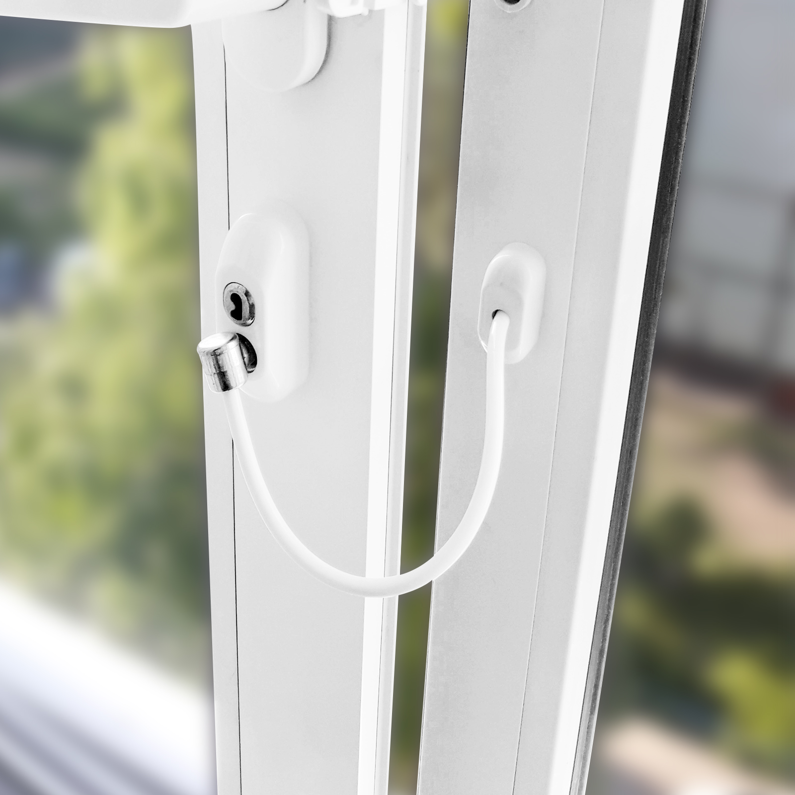 Детский замок (блокиратор) с тросиком и ключом предназначен для ограничения полного открывания окон, дверей, форточек, фрамуг и. т. д. Он обеспечивает безопасное нахождение детей в помещении, не дает ребенку возможности полностью открыть окно. В замкнутом состоянии створка откроется на безопасное расстояние 100-150 мм. Ограничитель открывания окон с тросом служит для предотвращения выпадения из окон детей и взрослых, а так же защищает от взлома окна или двери. После открытия замка ключом можно полностью открыть окно.